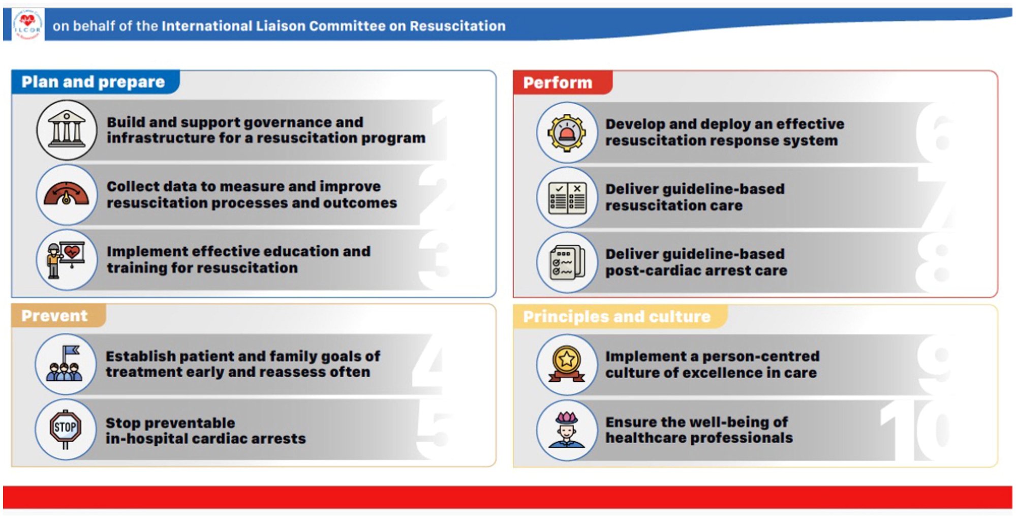 Le Comité international de liaison sur la réanimation (ILCOR, https://www.ilcor.org ) comprend des représentants de l’American Heart Association (AHA), de l’ERC, de la Fondation des maladies du cœur et de l’AVC du Canada (HSFC), du Comité australien et néo-zélandais de réanimation (ANZCOR), du Conseil de réanimation de l’Afrique australe (RCSA), de la Fondation interaméricaine du cœur (IAHF), du Conseil de réanimation d’Asie (RCA) et de la Fédération indienne des conseils de réanimation (IRCF), et en tant qu’organisation collaboratrice, la Fédération internationale de la Croix-Rouge et du Croissant-Rouge (FICR).