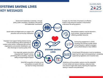 o Le volet « Systems Saving Lives » est fortement souligné : reconnaissance rapide de l’arrêt, alerte des secours, assistance aux témoins, formation, débriefing, retour d’expérience.